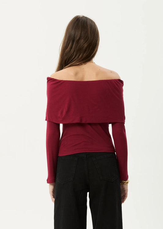 AFENDS BECKETT - BAMBOO OFF-SHOULDER LONG SLEEVE TOP Bamboo Off-Shoulder Long Sleeve Top