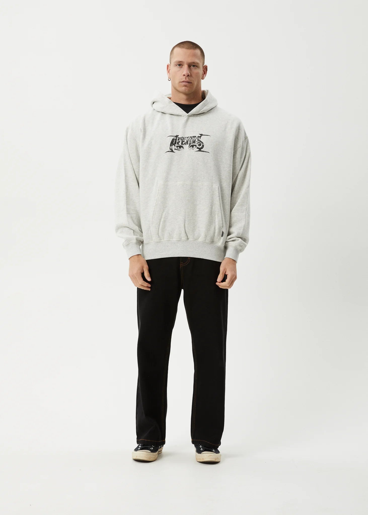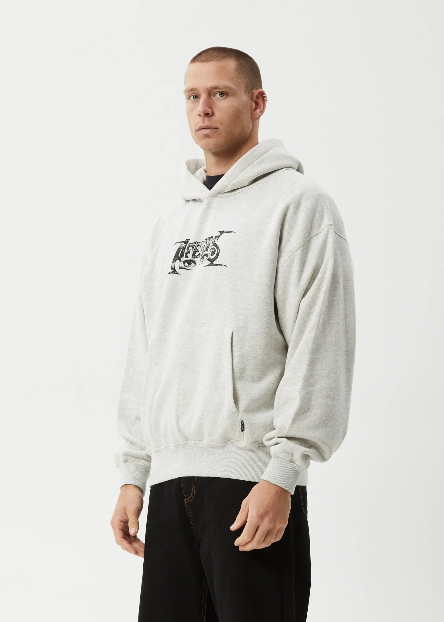 The 'All Eyes' boxy hoodie is designed with a slightly cropped wider fit, drawstring hood, front patch pocket, and screen-printed artwork by Cosmo. Made from a heavyweight recycled cotton blend brushed dry fleece, offering a distinct dry hand feel.
