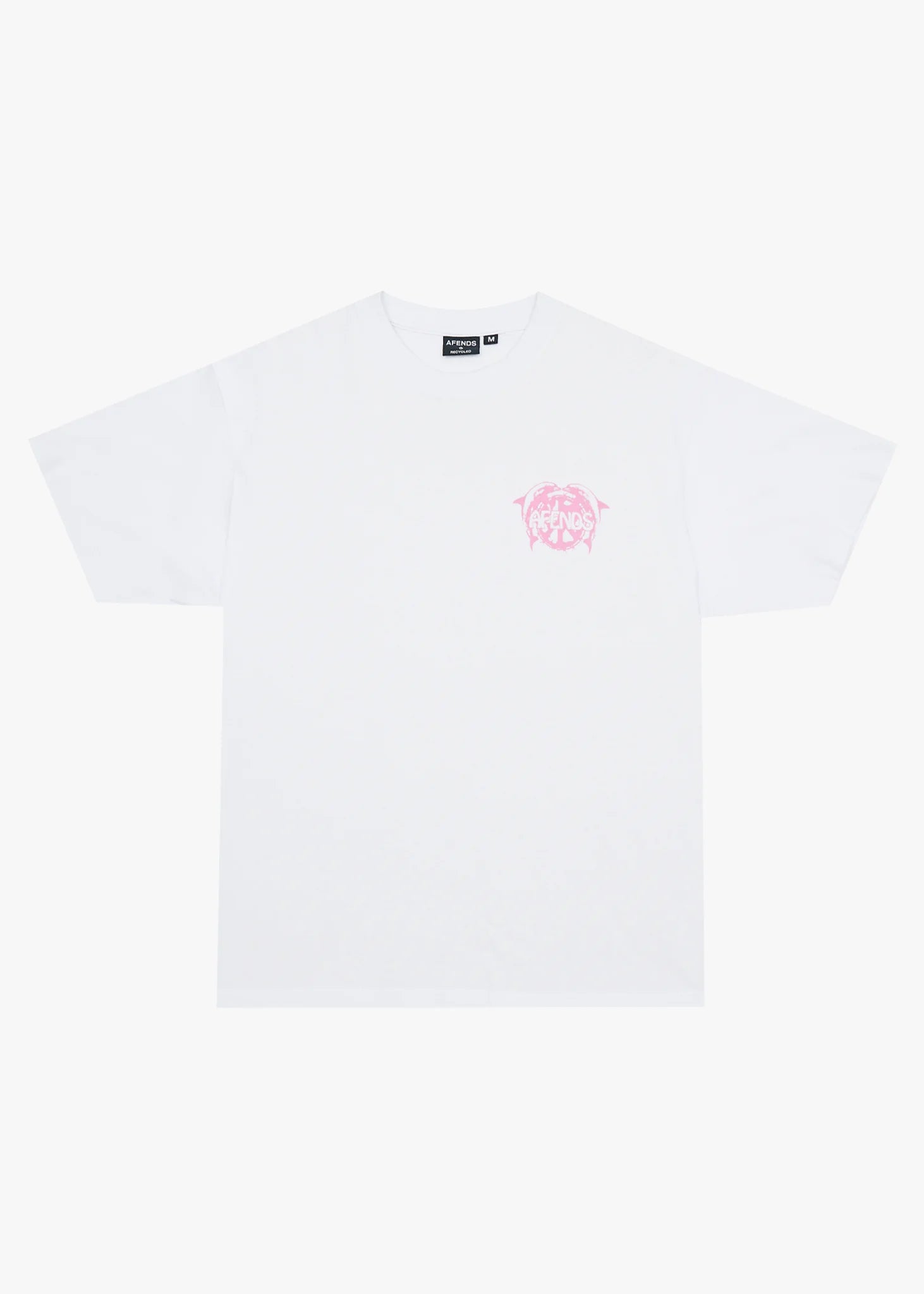 Designed with a slightly cropped, boxy fit and ribbed crew neckline, featuring front and back artwork with a distressed print effect for a worn in look. Made from a recycled cotton blend dry jersey with a premium hand feel.