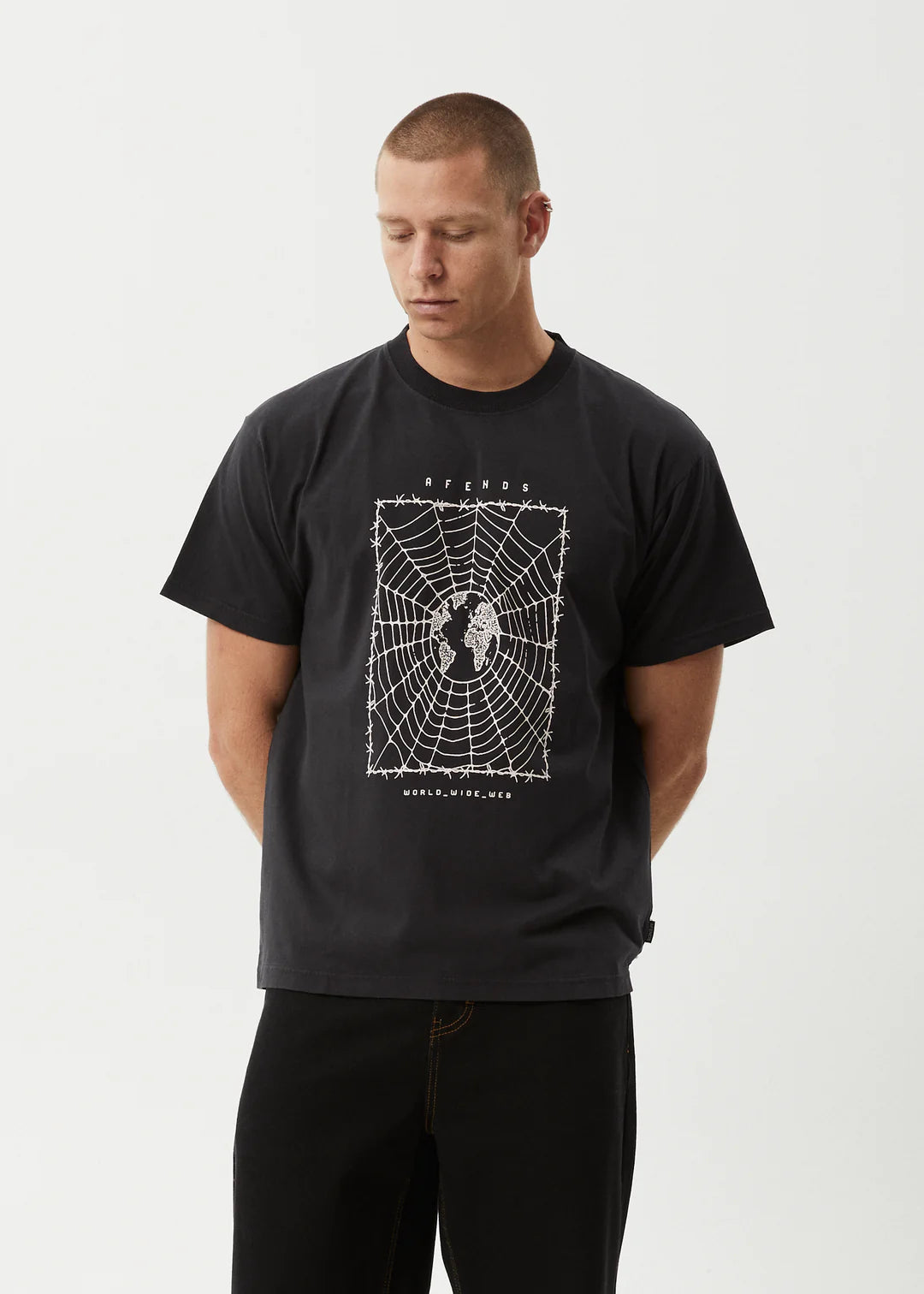 AFENDS World Wide Boxy Tee Recycled Stone Black