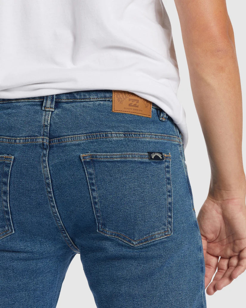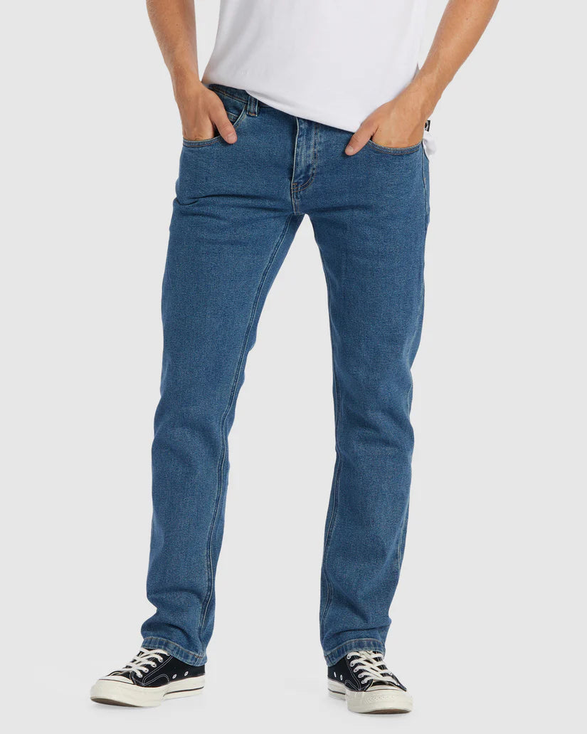 Additional Features: 13.5 oz. denim. 5 pocket with dual coin pocket at front right pocket, heritage Billabong inspired branding detail at front left belt loop.