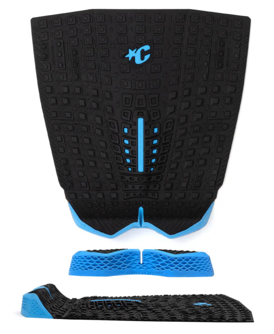 PROTO™1.4 surfboard grip offers more traction than possible before. Because of the limited production methods of cutting EVA foam blocks, regular options are constrained to 90 degree angles. The innovative moulded tech of PROTO™1.4 means we’ve been able to fully map the shape of a surfer’s foot and create the world’s first multi-directional traction pattern to suit. Other performance innovations in the Creatures PROTO™1.4 traction grip pad include: