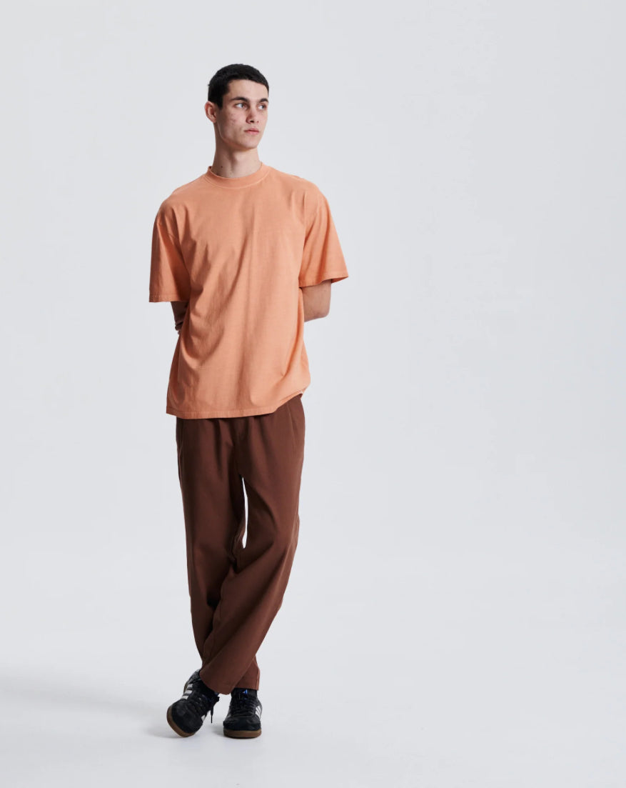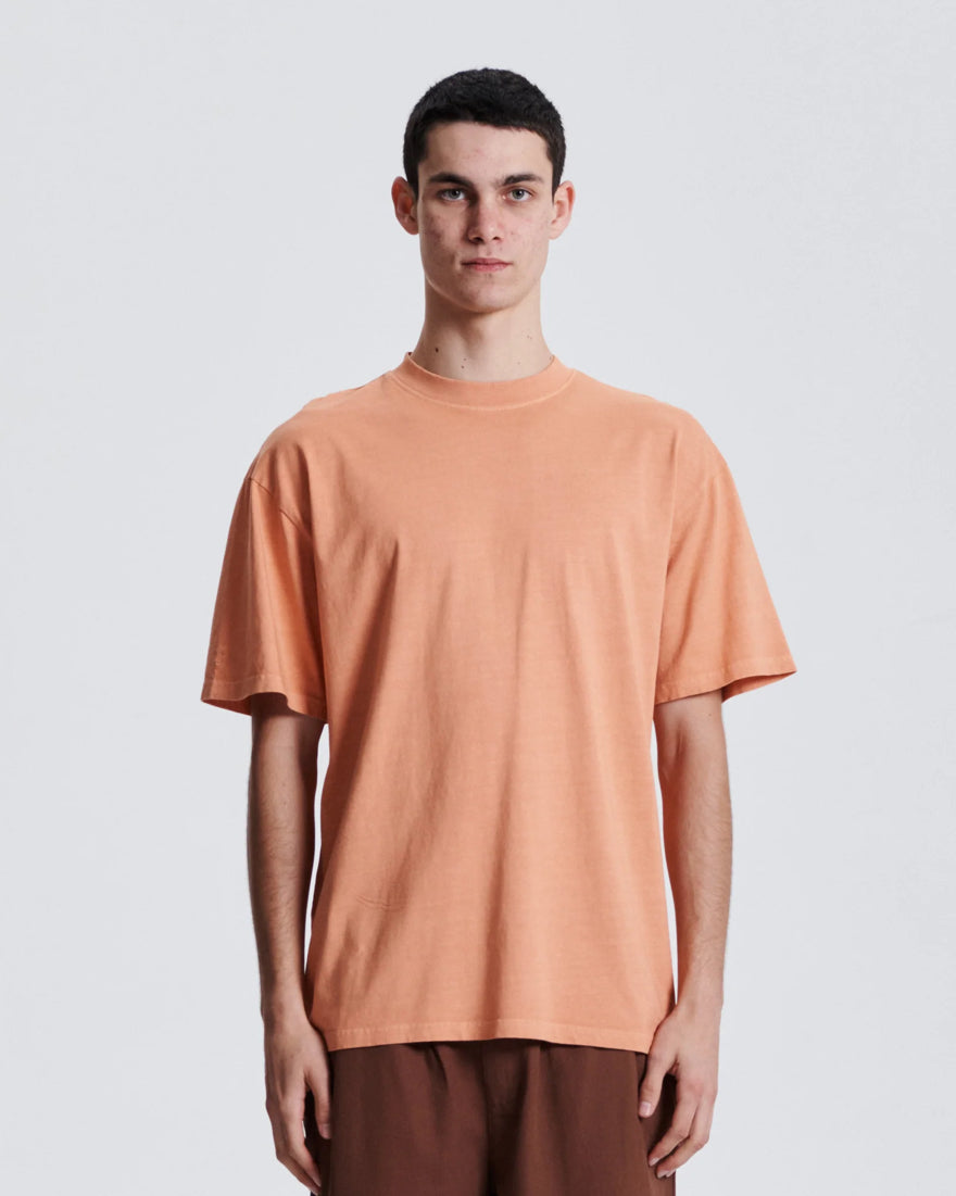 An everyday staple with a vintage feel. The Band Tee is garment-dyed and sand-washed, giving it a lived-in look and ultra-soft feel from day one. Cut from 230gsm cotton singles jersey, it has a slightly boxy fit, a 30mm wide neck rib, and sits just off the shoulder for a relaxed drape. Designed to be worn on repeat—because once is never enough.