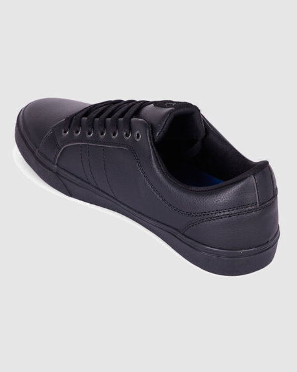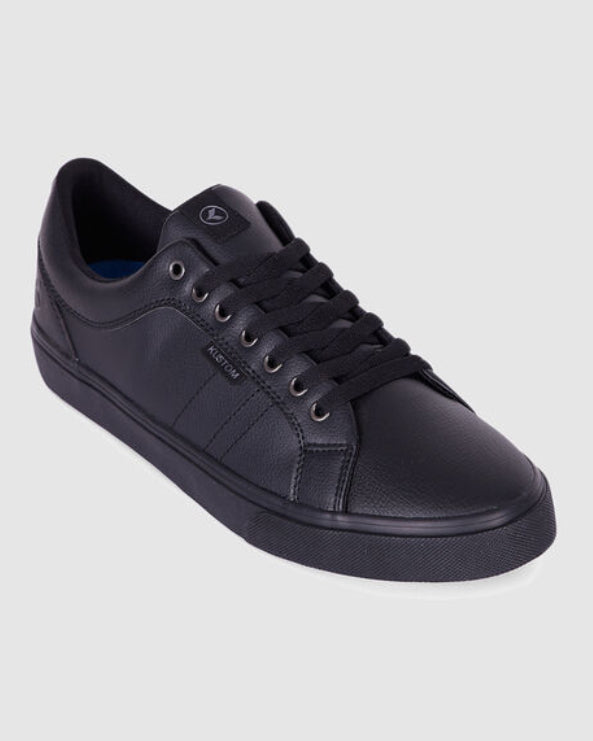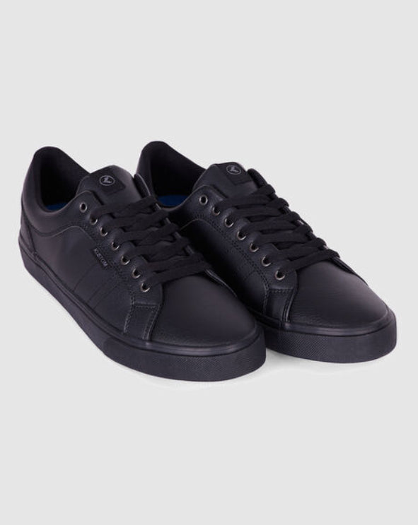 The Kustom Mens Finetime Classic Sneaker, becomes even more classic with a durable action leather packed in a simple Black colour. A court style sneaker finished with a low top design with a lightly padded tongue and collar. Features: Court Style Sneaker Lightly padded tongue and collar PU leather upper Durable action leather Travelite premium cushioning footbed for comfort Deep grooved flexible rubber outsole for enhanced flex & grip Lace up design Material: 80% Polyurethane 20% Leather