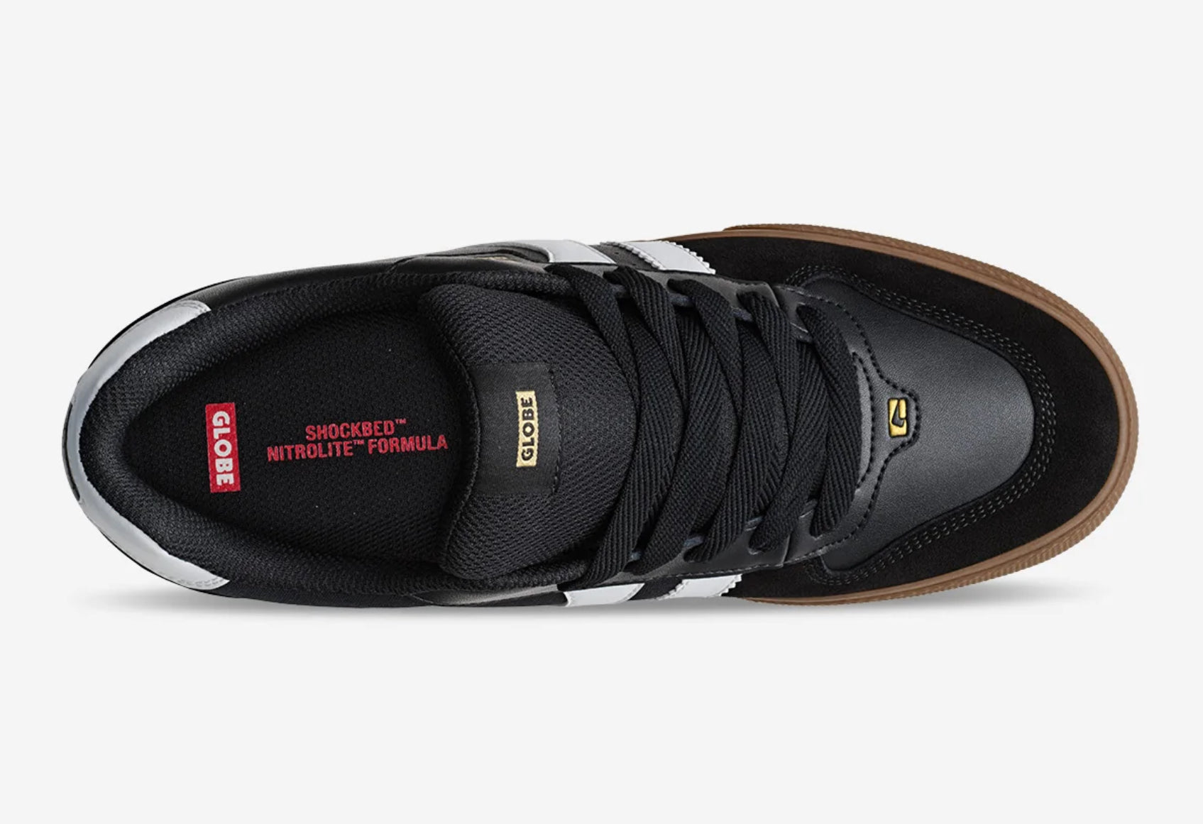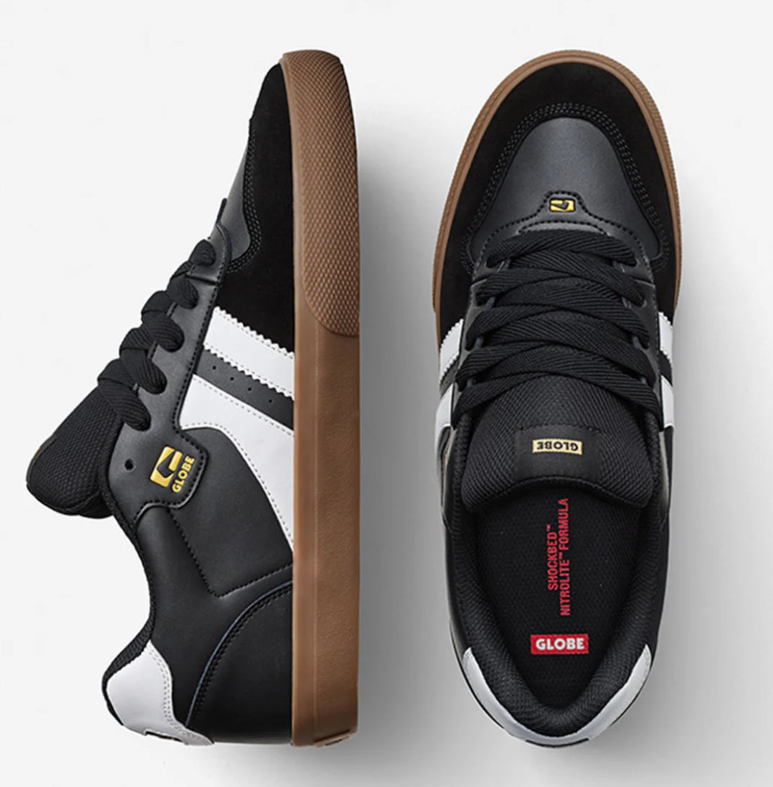 The Encore 2 in Black/White/Tobacco is a classic vulcanised skate style with twin design stripes, full length herringbone outsole pattern and triple stitch toe cap.