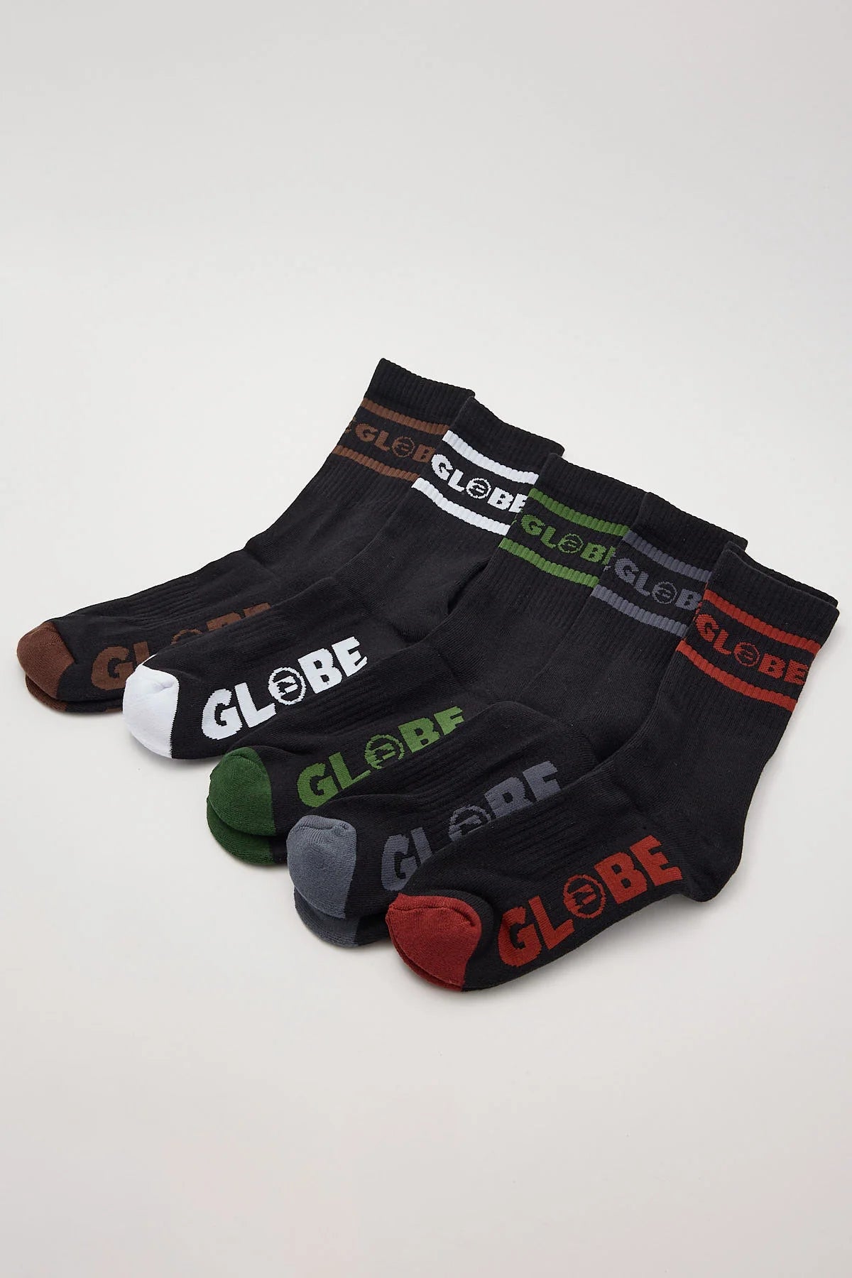 GLOBE TILT HI CREW SOCK 5 PACK BLACK/ASSORTED