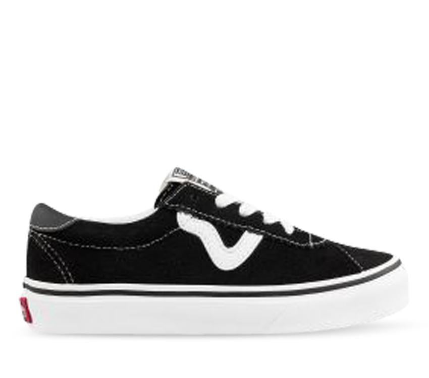 The Kids Suede Vans Sport is a retro lace-up style featuring sturdy suede uppers with leather accents, old school V sidestripes, padded collars, and signature rubber waffle outsoles.