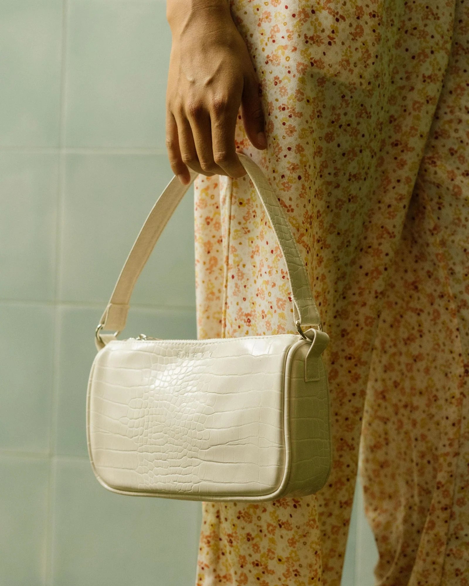 W22cm - H18cm - D6.5cm Baguette Shaped Hand Bag . Material: Vegan Leather