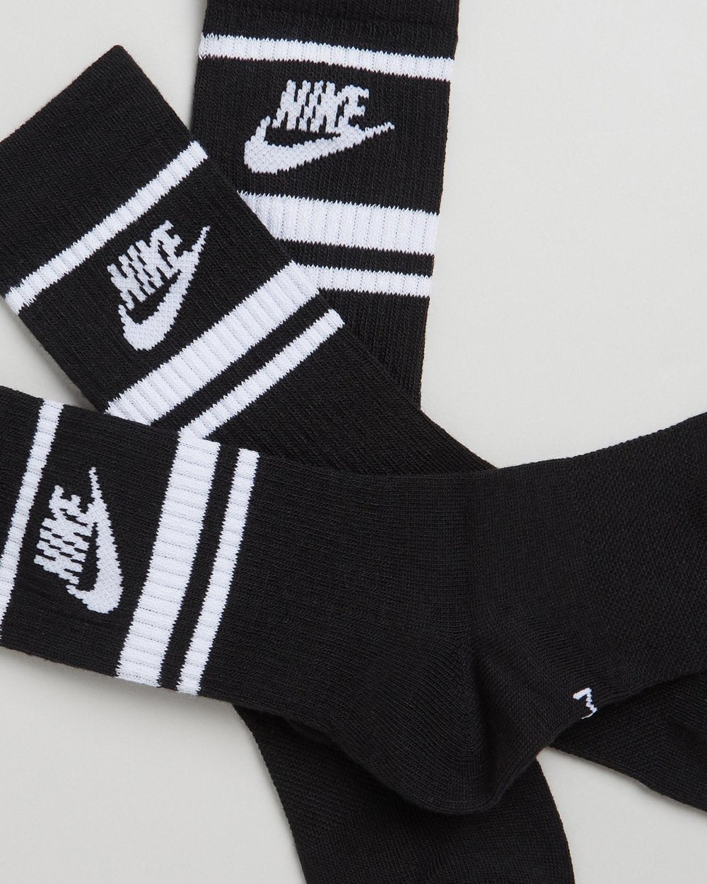 Designed through the lens of sport, the Nike Sportswear Essential Socks have lightweight cotton with a soft feel that's ready for everyday wear.Knit graphics and stripes nod to the socks that ruled gym classes in the '80s.