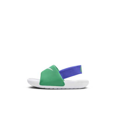 Helps younger feet stay cool and comfortable, with the Nike Kawa Toddlers Slides. With a strap that contours to the foot, ultra-soft cushioning and a flexible outsole, this slide conforms to the natural contours of your child's feet to provide comfort and relief after activity. The lightweight flex-groove outsole ensures a natural range of motion and ensures long-wearing durability.