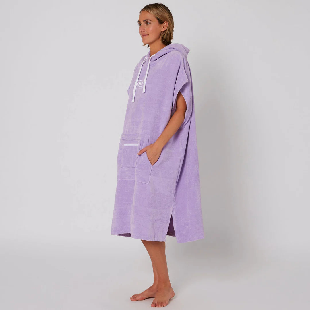 The Ladies Hooded Poncho towel is perfect for drying off and changing out of your wetsuit or swimwear. With oversize sleeve openings, zip patch pocket and in 340GSM comfy cotton velour this is an easy poncho that you can slip in and out of after a day at the beach.