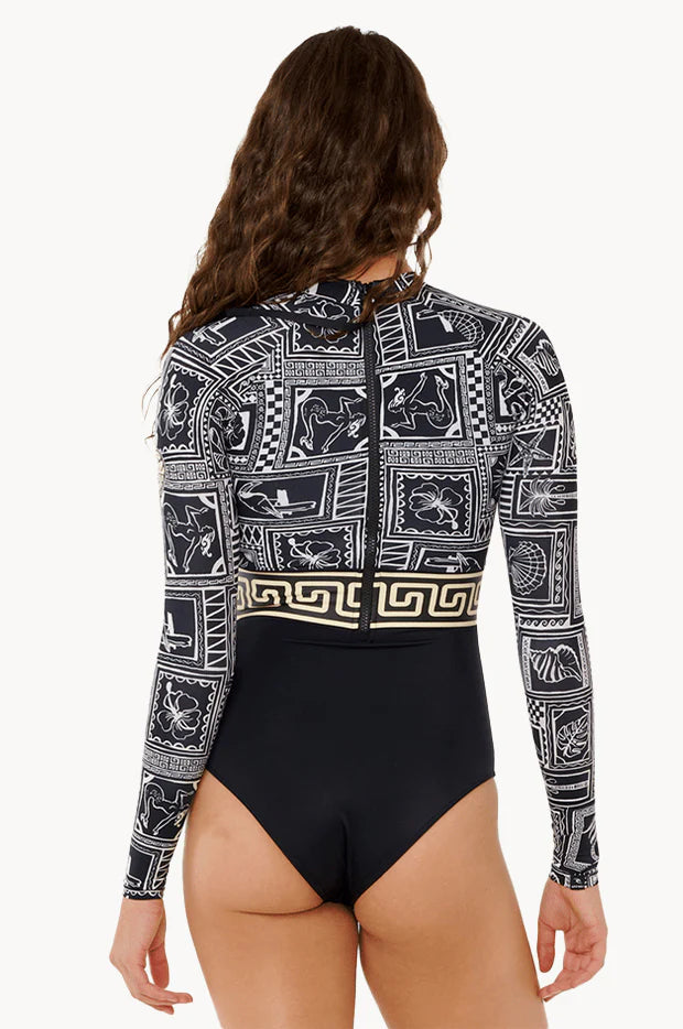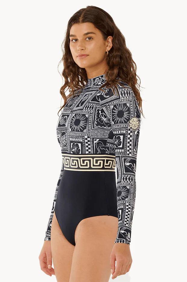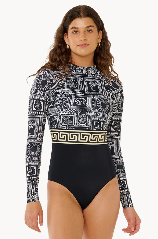 Let your girl shine like the waves with the Mermaid Beach UPF Surf Suit. This stylish suit features an all-over yardage print and is made from 80% polyamide and 20% elastane, incorporating Creora® Highclo™ recycled nylon for a sustainable touch. The back zip and fully lined design ensure comfort, while removable padding adds versatility. With a screen print logo, the Mermaid Beach UPF Surf Suit is a must-have for every young adventurer.
