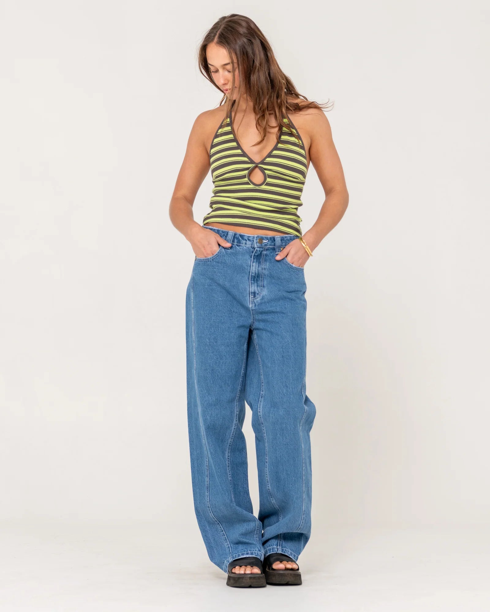 Mid Rise Barrel Leg Jean With 5 Pkt Detailing And Belt Loops. Material: 12.6oz 100% Cotton Rigid Denim