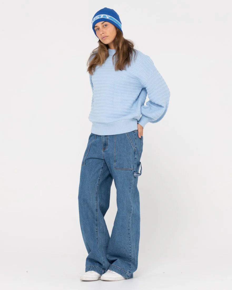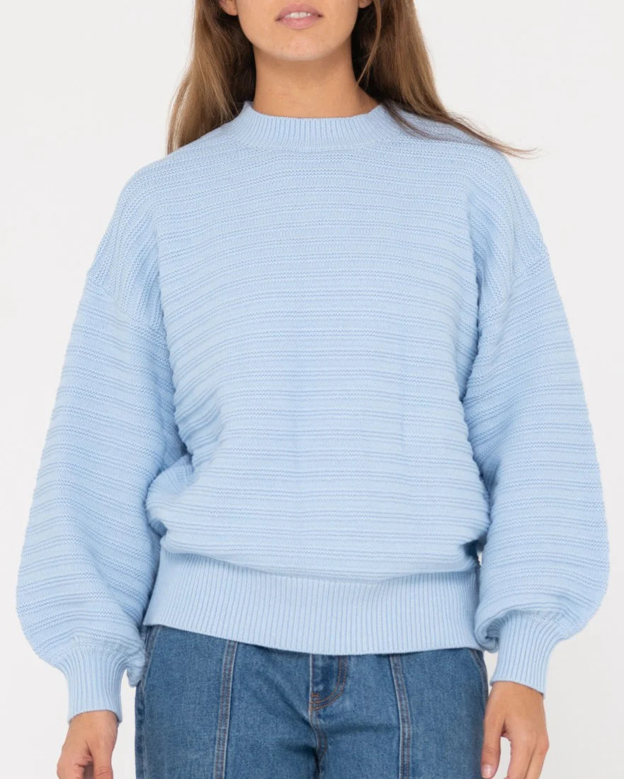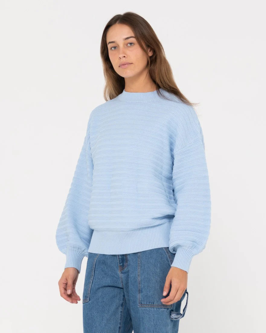Relaxed Chunky Crew Neck Knit With Overall Textured Pattern. Material: 60% Cotton 40% Acrylic Yarn