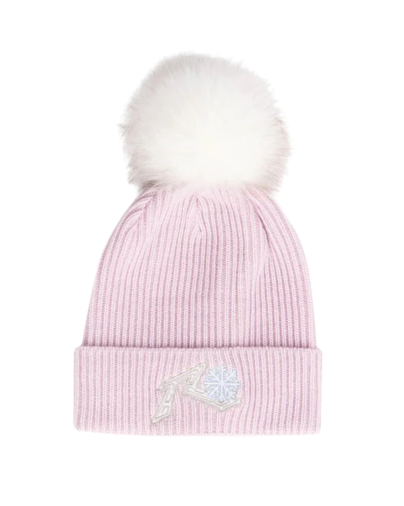 Embroidered Single Layer Beanie With Folded Cuff And Fur-look Pom Pom.