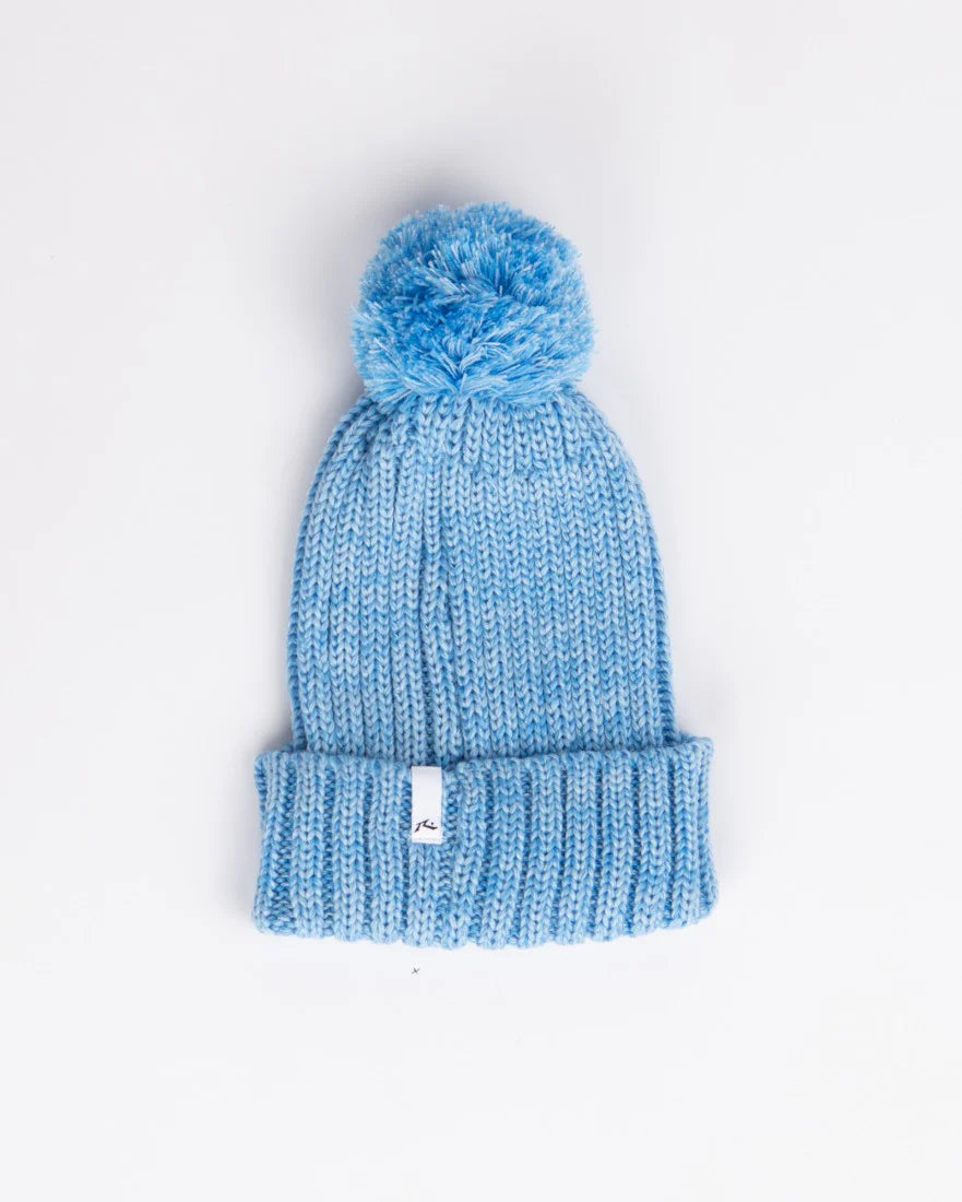 Single Layer Beanie In Marled Yarn With Folded Cuff And Pompom With Rusty Woven Fold Label. Material: Soft Acrylic