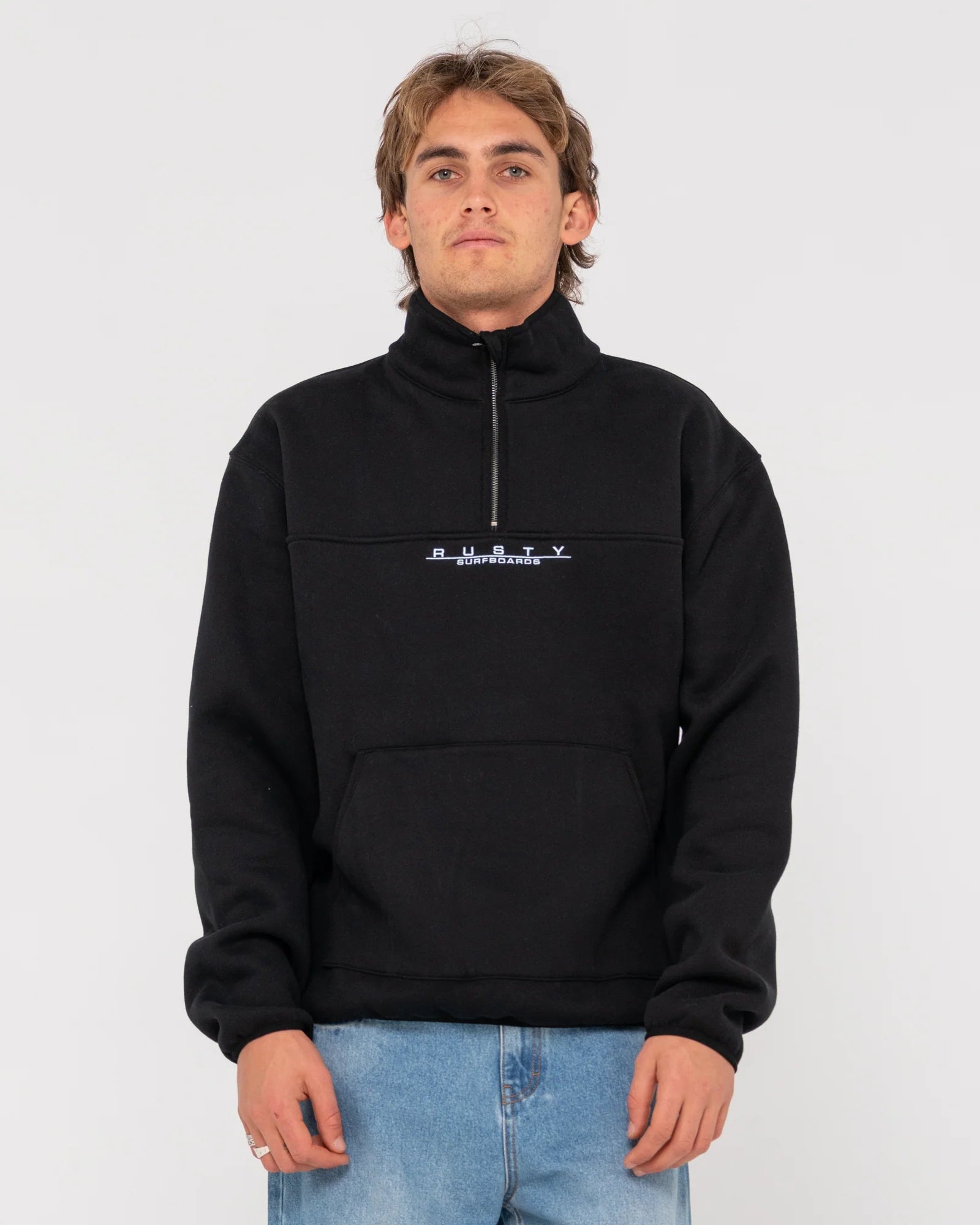 Relaxed Fit 1/4 Zip Fleece With Rusty Embroidery - Pre Shrunk. Material: 280 Gsm Brushed Fleece - 55% Cotton 45% Polyester
