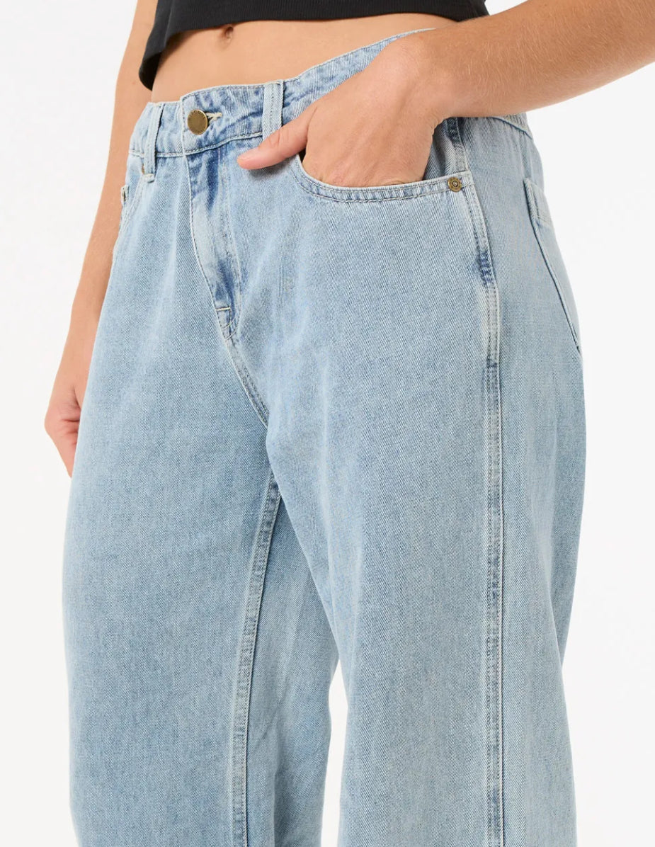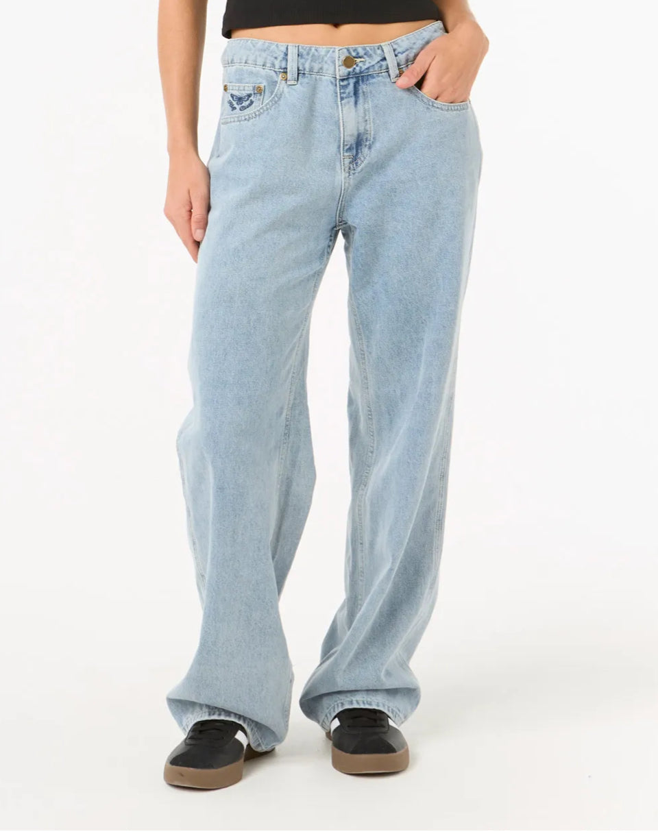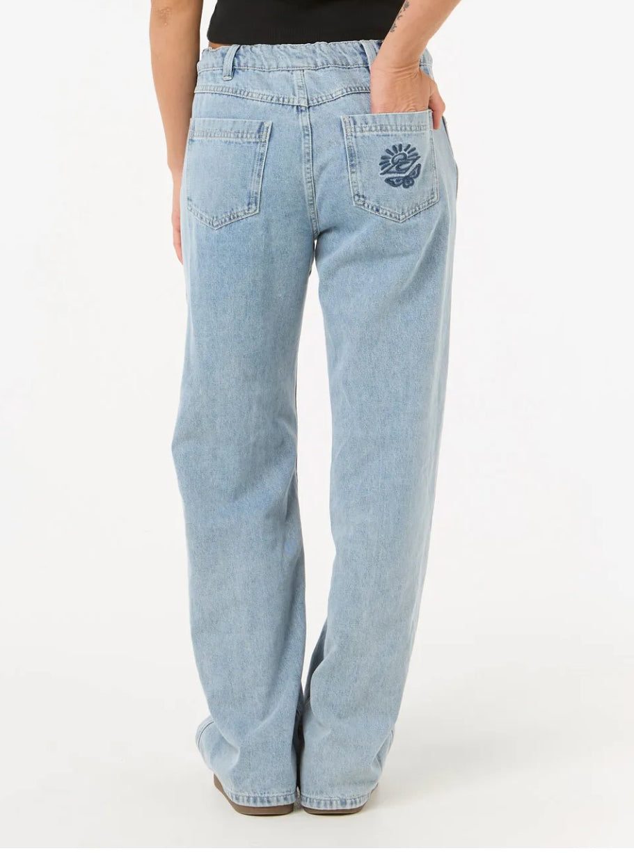 Introducing your new favourite denims... the Aggie Relaxed Jean will make feel right at home in a relaxed and comfortable fit. Finished with a heavy enzyme wash and featuring a embroided logo on the back pocket, these jeans are perfect all year round, pairing with either your go to tank or hood.